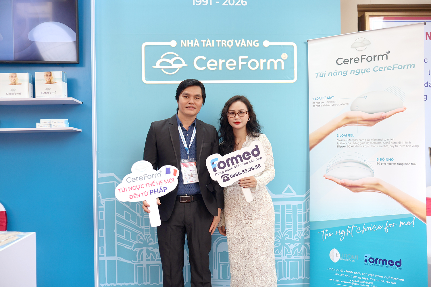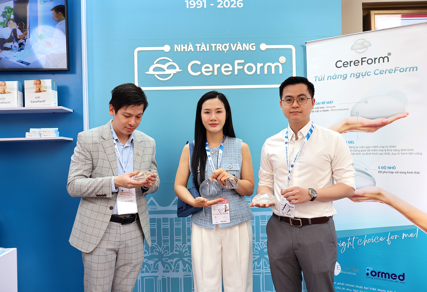 Trong khuôn khổ hội nghị, Cereform tham gia với vai trò nhà tài trợ vàng, trưng bày và giới thiệu các dòng túi ngực thế hệ mới tới cộng đồng chuyên môn. Gian hàng ghi nhận sự quan tâm của nhiều bác sĩ phẫu thuật thẩm mỹ đến tham quan, tìm hiểu và trao đổi trực tiếp về đặc tính sản phẩm cũng như khả năng ứng dụng trong thực tế lâm sàng.