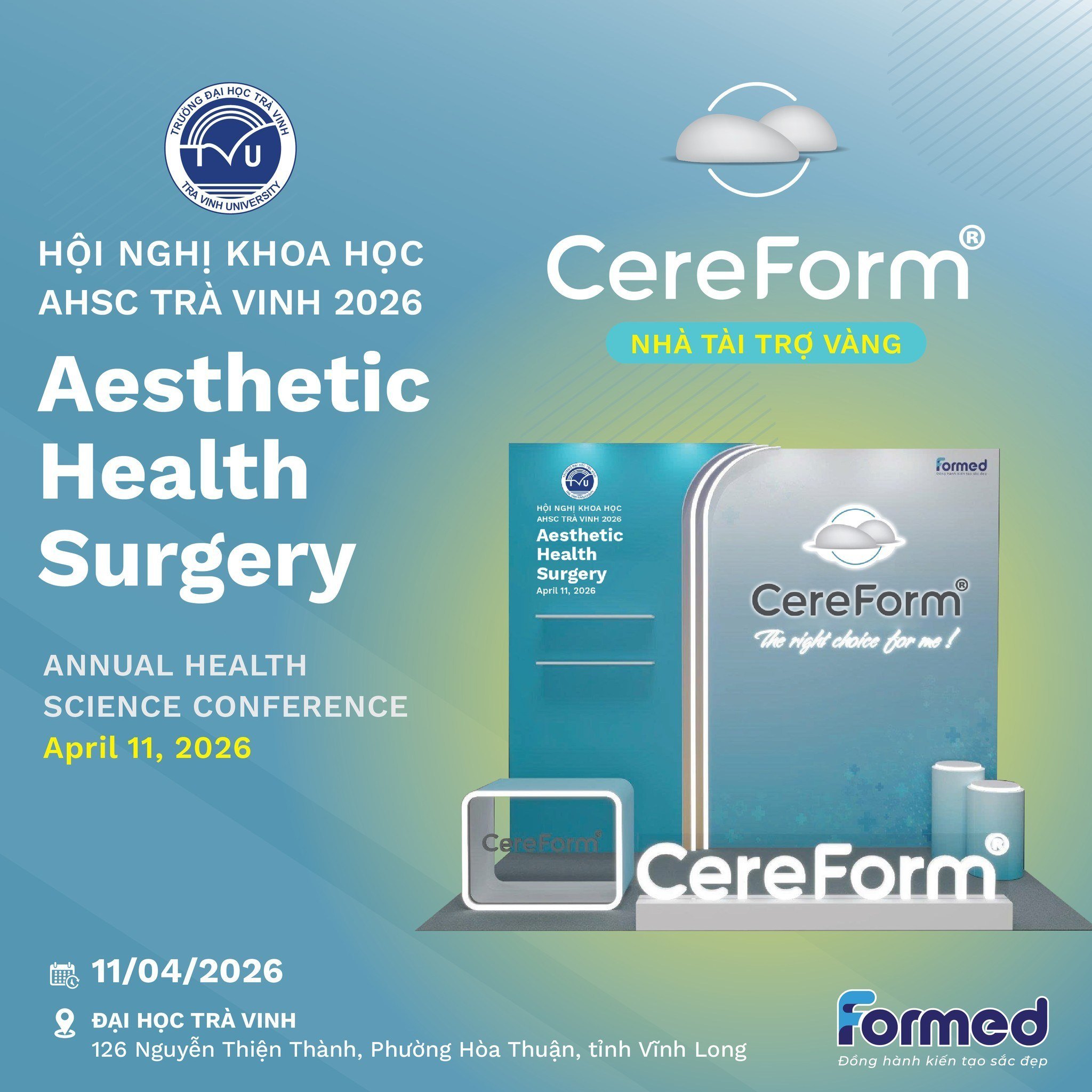 Đồng hành cùng sự kiện với vai trò Nhà tài trợ Vàng, CereForm trân trọng kính mời Quý Bác sĩ và các chuyên gia đến tham quan, trao đổi và trực tiếp trải nghiệm các dòng túi ngực thế hệ mới từ Pháp. Sản phẩm được phát triển theo tiêu chuẩn châu Âu, chú trọng tính an toàn trong cấy ghép, khả năng duy trì form ngực ổn định và hướng tới kết quả thẩm mỹ tự nhiên, bền vững sau phẫu thuật.
