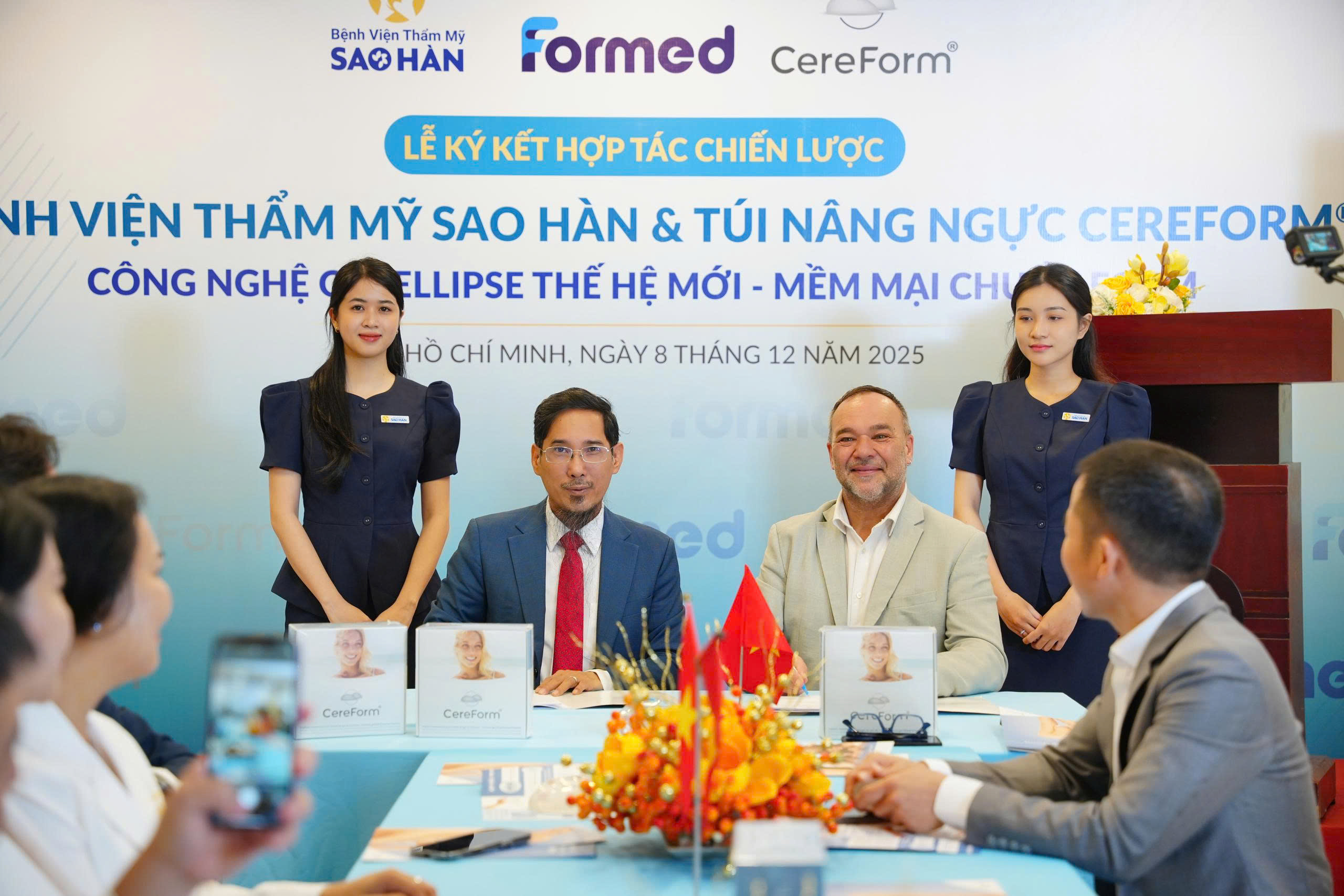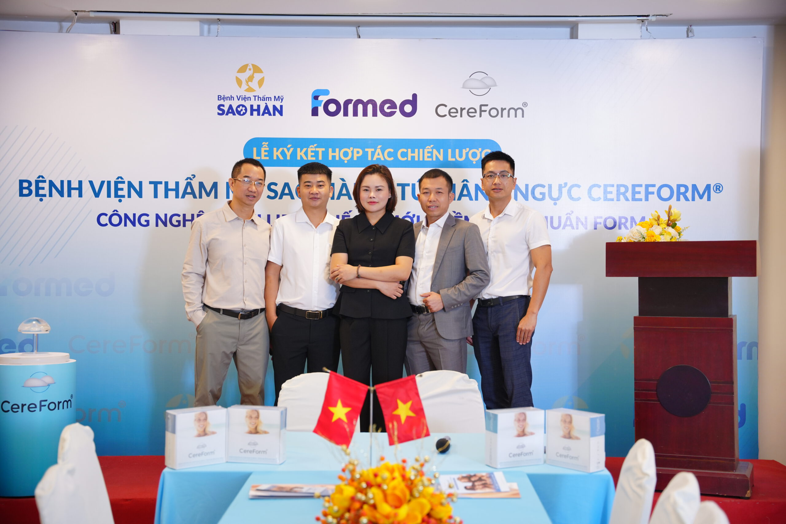 Ngày 8/12/2025, Nhãn hàng CEREFORM – do Công ty Formed phân phối tại Việt Nam và Bệnh viện Thẩm mỹ Sao Hàn đã chính thức ký kết hợp tác chiến lược. Đây là dấu mốc quan trọng trong việc đưa các dòng túi ngực chất lượng cao, an toàn theo tiêu chuẩn châu Âu đến gần hơn với khách hàng khu vực miền Nam.